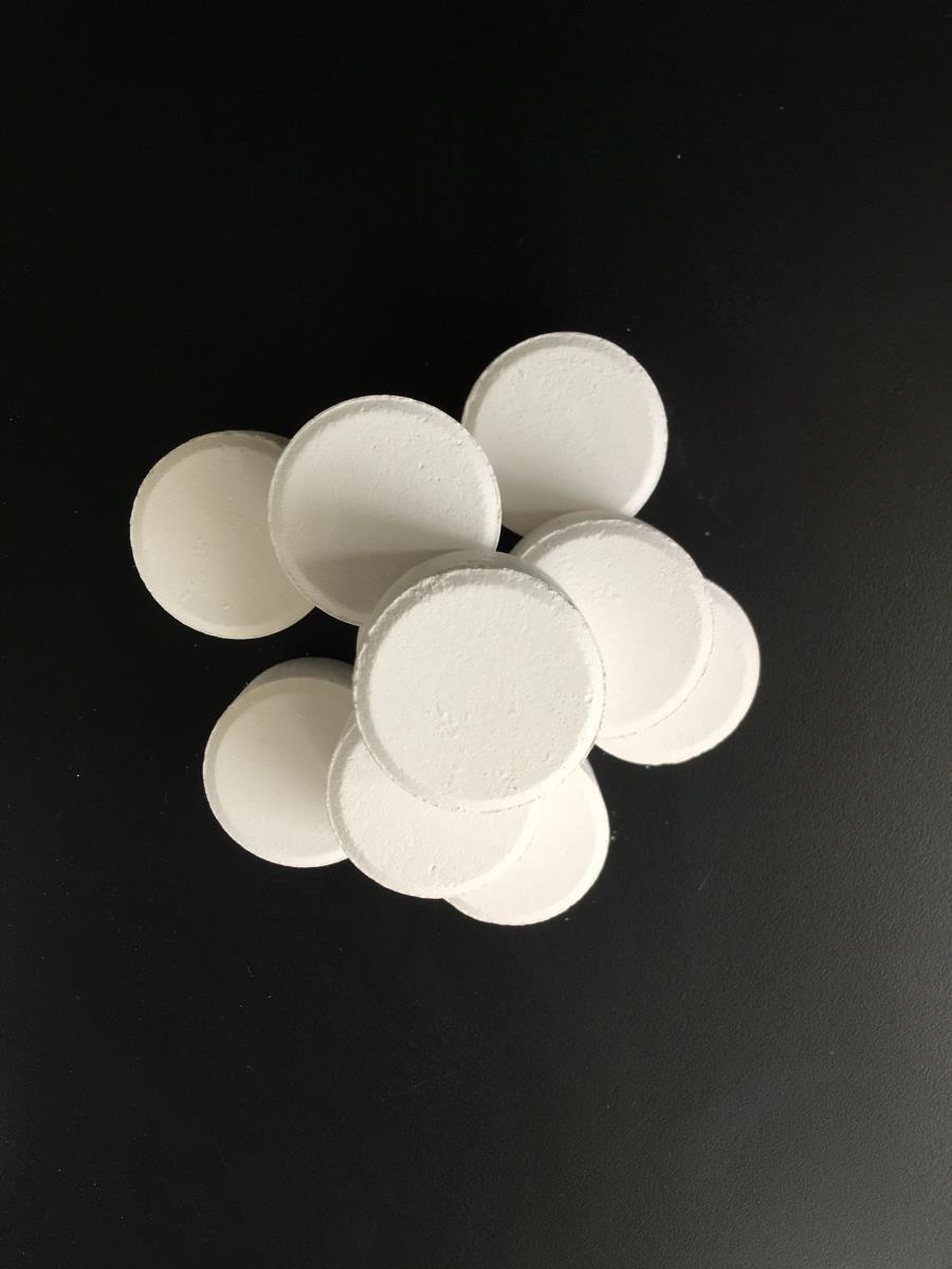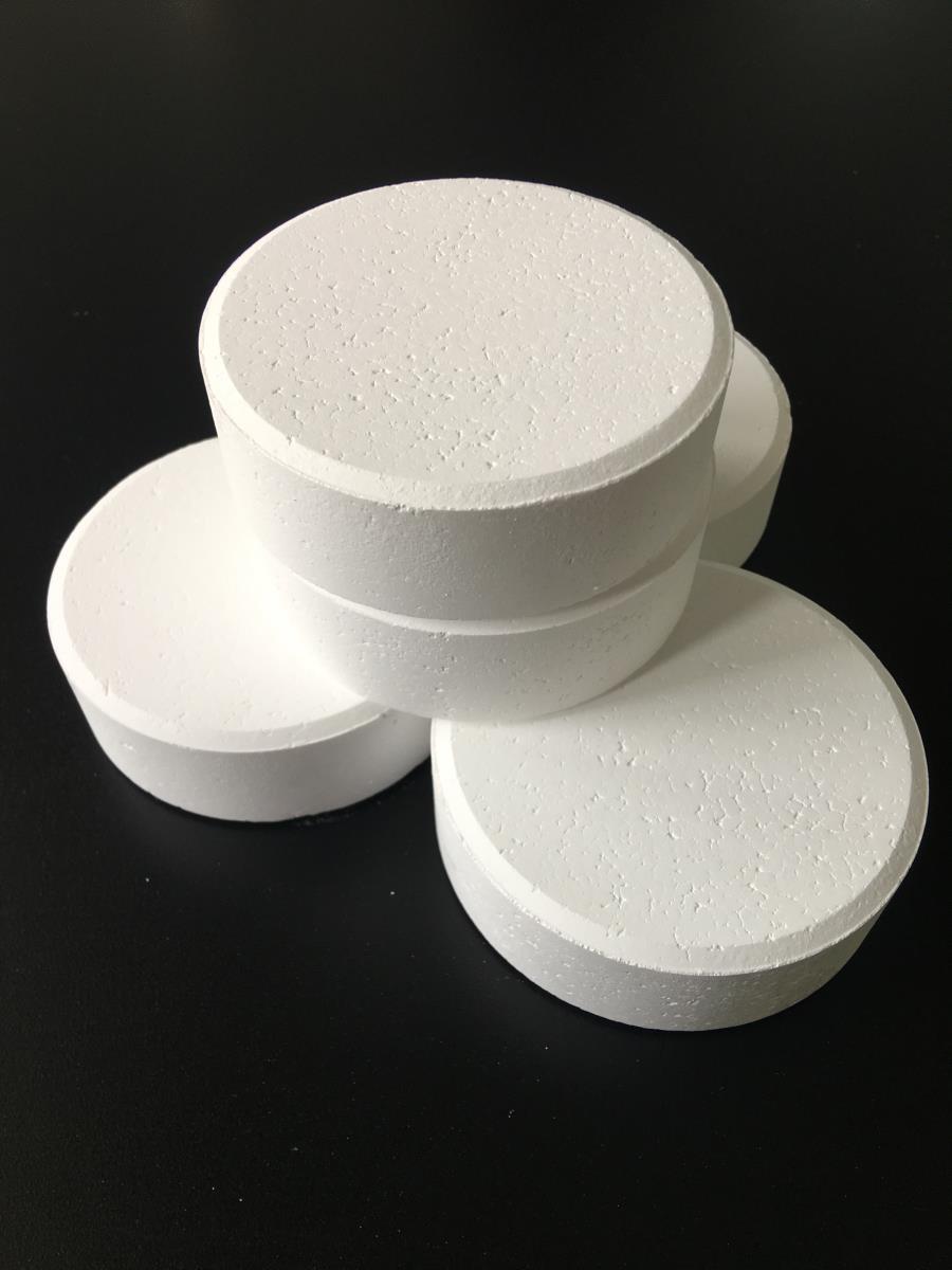 有刺激性氣味,有機化合物,白色結晶性粉末或粒狀固體,具有強烈的氯氣刺激味。pH值(1%水溶液)2.6~3.2,白色結晶粉劑、粒劑、片狀(3.3克片20克片200克片,500克片等)